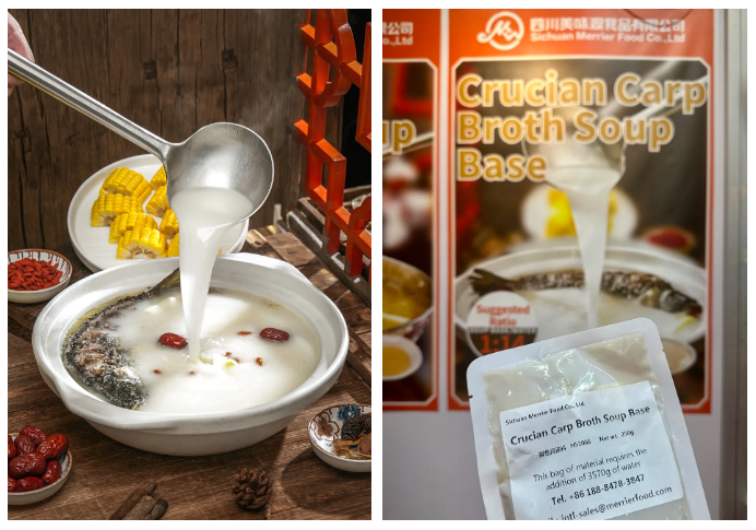 鲫鱼高汤是健康轻食的新选择。选用优质淡水的鲫鱼,用低温锁鲜工艺存鲜味营养,靠本味提鲜,汤色奶白,契合全球市场对轻食、健康的消费需求。仅需拆袋加热即可,可搭配粉面、粥品,甚至作为儿童餐、养生餐的汤底,客群覆盖广;原料成本可控,门店毛利可达65%以上,轻松打造差异化产品。