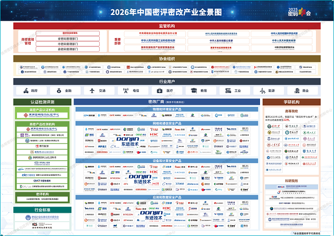 此次入选《2026年中国密评密改产业全景图》,是行业对东进技术自研实力、密码产品性能与全品类供给能力的高度认可。未来,东进技术将继续以技术创新为驱动力,深化全栈自研能力,持续完善密评密改产品矩阵,深化与行业生态伙伴的协同合作,为推动我国密评密改产业规范化、高质量发展,保障国家关键信息基础设施安全贡献更多力量。